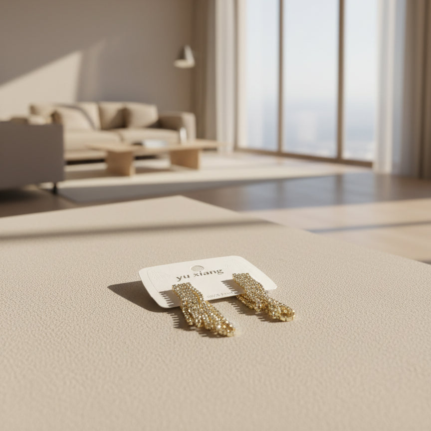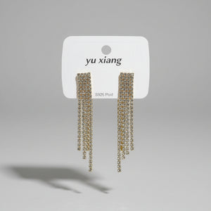 These glamorous Gold Waterfall Tassel Earrings are designed to maximize sparkle and movement, creating a luxurious and celebratory feel. Perfect for adding a dramatic touch to evening wear, weddings, or any special event.