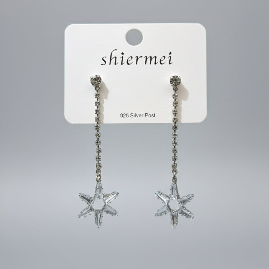 Design: Delicate and long dangling style featuring a celestial or snowflake motif.